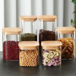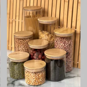 بانکه پیرکس مربعی درب بامبو قطر 6 سانتیمتر