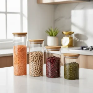 بانکه شیشه ایی درب استیل حبوبات کاپریس بسته 4 عددی