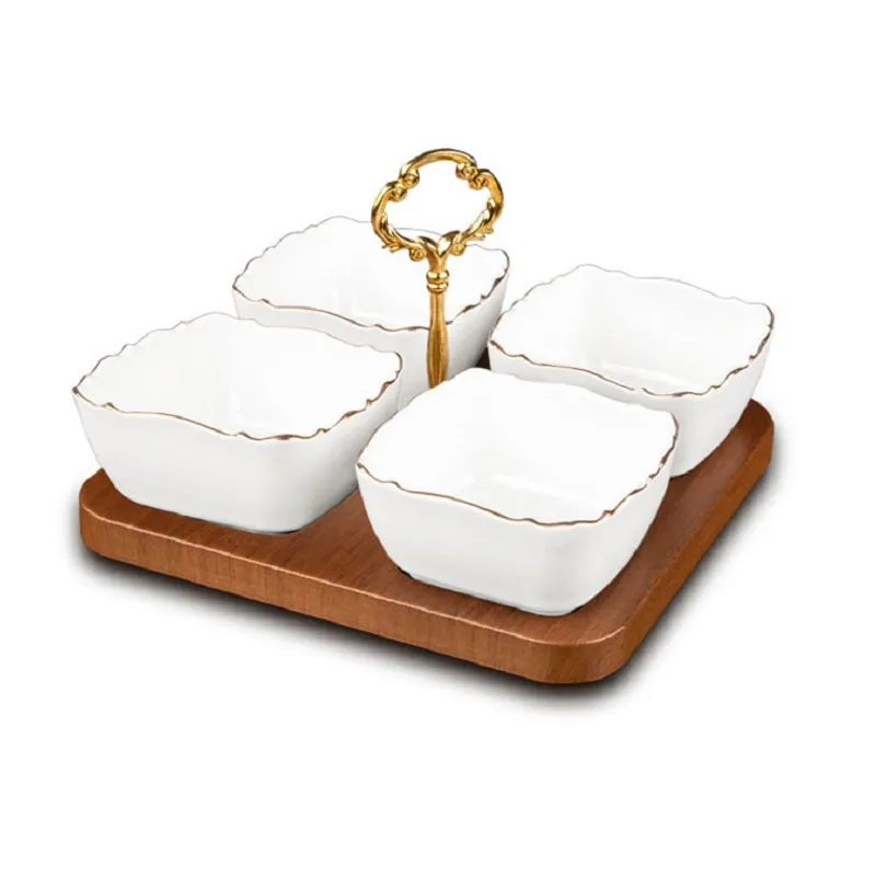 اردورخوری سه خانه مستطیل لب طلا لمون کد 328