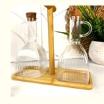 روغن ریز و جا آبلیمو پیرکس درب چوبی ترکیب شیشه شفاف و چوب، این محصول با طراحی ساده و شیک، مناسب برای نگهداری آبلیمو، سرکه، روغن زیتون و سایر مایعات پرکاربرد آشپزخانه است.