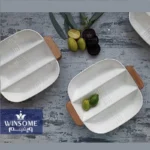 اردوخوری مربع وینسم کد 223 محصولی ایده آل برای پذیرایی های شیک و مدرن شماست. این ظرف با قسمت های مجزا به شما این امکان را می دهد انواع فینگرفود، تنقلات، مزه ها، میوه و مغزیجات را به صورت تفکیک شده و جذاب سرو کنید. جنس سرامیک با کیفیت، دوام بالا و شست و شوی آسان را تضمین می کند. طراحی کاربردی و زیبای آن، جلوه ای خاص به میز پذیرایی شما می بخشد و تجربه ای دلنشین از پذیرایی را فراهم می آورد.
