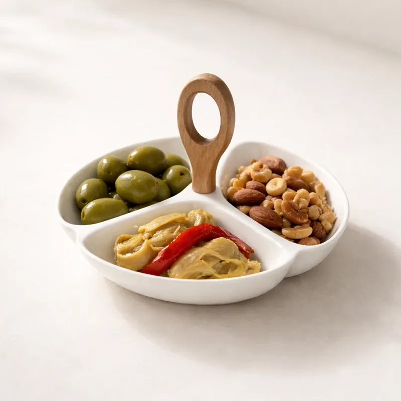 اردورخوری چوب سرامیک 3 خانه وینسم کد 116، با طراحی مدرن و مینیمال، انتخابی شیک برای سرو انواع تنقلات، آجیل، زیتون و پیشغذاست. بدنهی سرامیکی سفید با تقسیمبندی کاربردی، در کنار دستهی چوبی خوشدست، جلوهای زیبا و متفاوت به میز پذیرایی میبخشد. کیفیت ساخت بالا، شستوشوی آسان و هماهنگی با دکوراسیونهای مدرن، این محصول را به گزینهای ایدهآل برای استفاده روزمره و مهمانیها تبدیل کرده است.