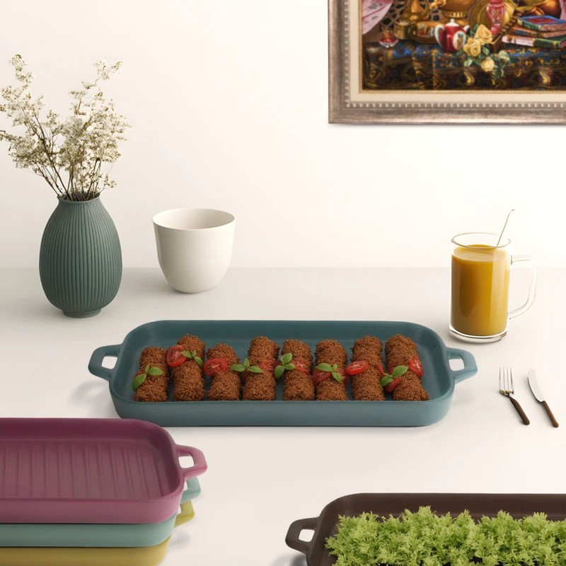 تابه سرامیکی دو دسته مات رنگبندیتابه سرامیکی دو دسته مات مدل گریل رنگبندی – طول تابه 38 سانتیمتر