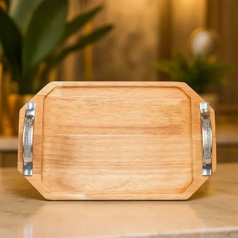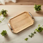سینی چوبی مستطیل دسته فلزی کد 1024
