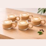فنجان پیرکس (لته خوری) دسته چوبی بسته 6 عددی ارتفاع 6 سانتیمتر و قطر 8 سانتیمتر