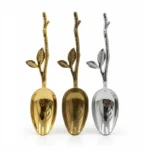 قاشق آجیلخوری طرح برگ با طراحی ظریف و الهامگرفته از طبیعت، انتخابی شیک برای سرو آجیل، تنقلات و دسرهای کوچک است. دستهی فلزی با فرم شاخه و برگ، جلوهای لوکس و خاص به میز پذیرایی میبخشد و کاسهی صیقلی قاشق، استفادهای روان و خوشدست را فراهم میکند. این قاشق مناسب پذیرایی در مهمانیها، استفاده روزمره و همچنین هماهنگ با انواع ظروف پذیرایی کلاسیک و مدرن میباشد.