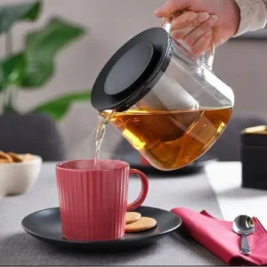 قوری پیرکس مدل خطی دسته دار طلایی 800-1200- 1500 میل(0نفر)