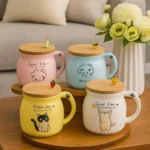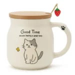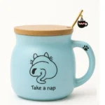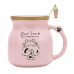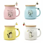 ماگ سرامیکی درب دار طرح گربهماگ سرامیکی کوچک درب دار رنگی طرح گربه به همراه قاشق