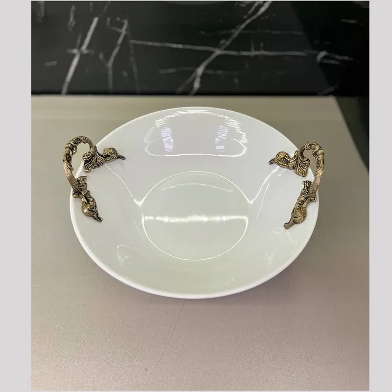 کاسه گرد پایه دار دسته پیوتر طلایی سایز 28 کد 130چینی تقدیس